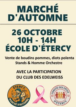 Le Comité des Fêtes organise son marché d'automne le 26 octobre de 10h à 14h en partenariat avec Le club des Edelweiss et L'association Drôles de Rames à l'occasion d'Octobre Rose.